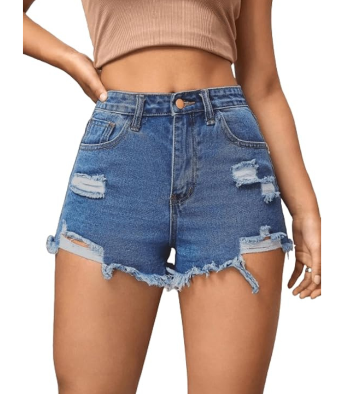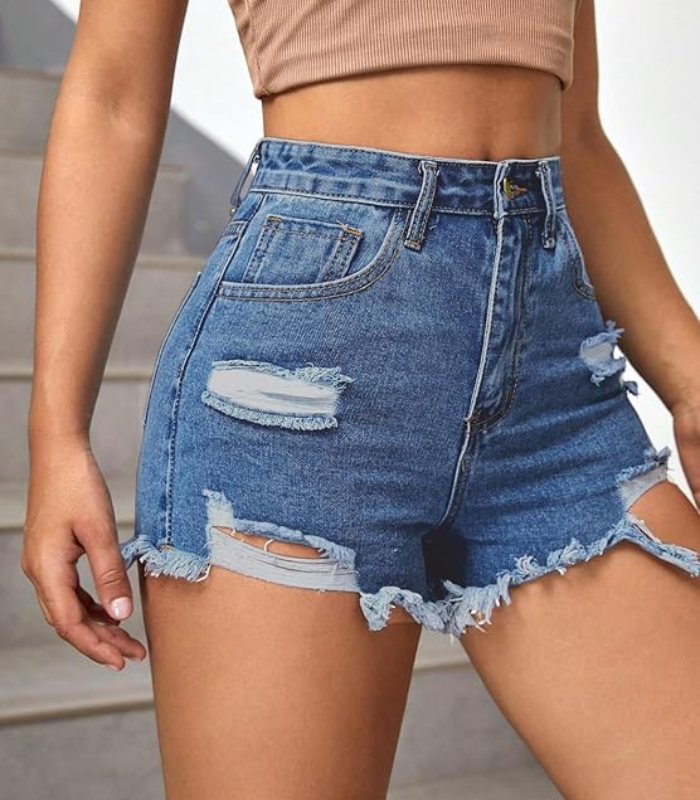 These women’s denim raw hem ripped shorts, fashioned from 100% cotton, blend comfort with style. Featuring strategically placed distressed details for an edgy allure, they showcase a rugged, unfinished raw hemline for a casual, cool look. With a mid-rise waist and a flattering fit, these versatile shorts can be effortlessly paired with a variety of tops. Whether you’re by the beach or in the city, these shorts are your go-to for a trendy and relaxed summer ensemble.