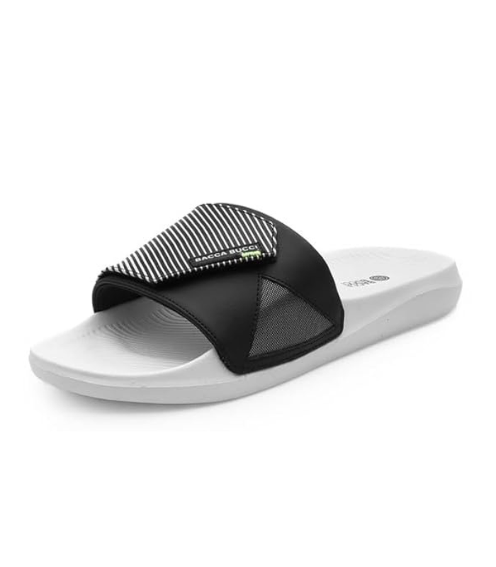 - Modern Striped Strap With Breathable Mesh Panel: A stylish diagonal-stripe upper paired with a side mesh insert gives the slides a sporty, futuristic look while ensuring enhanced airflow and comfort.