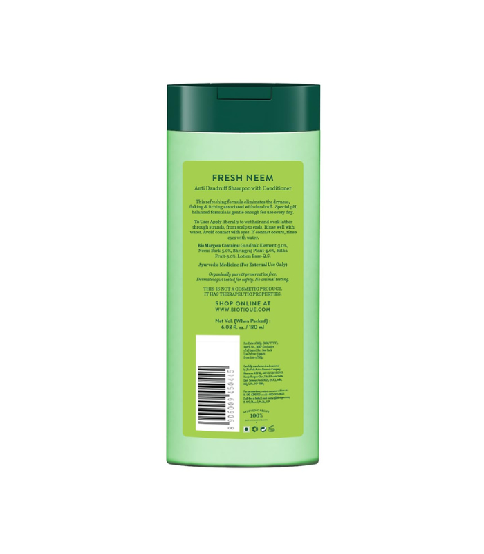 • Key Benefit: The special pH balanced formula of biotique bio neem margosa anti dandruff shampoo is gentle enough to use every day. It makes hair look fresh, lustrous, and full of natural body.