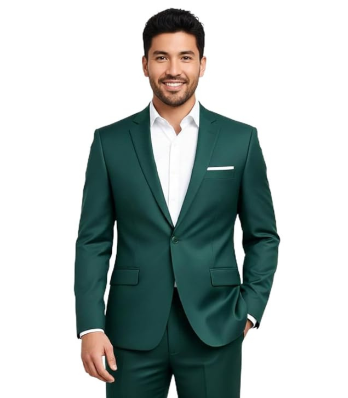 • Premium Formal Blazer: Men’s single-button suit jacket in sophisticated green colour, perfect for business meetings, formal events, and professional occasions