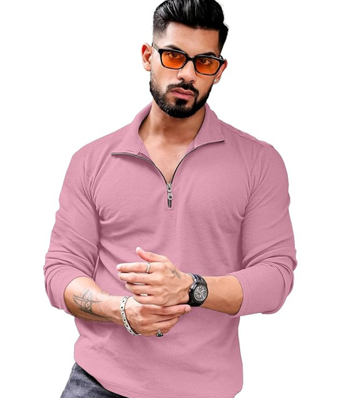 • PREMIUM DESIGN: Quarter-zip polo t-shirt featuring sophisticated waffle knit texture and modern collar design for a stylish casual look