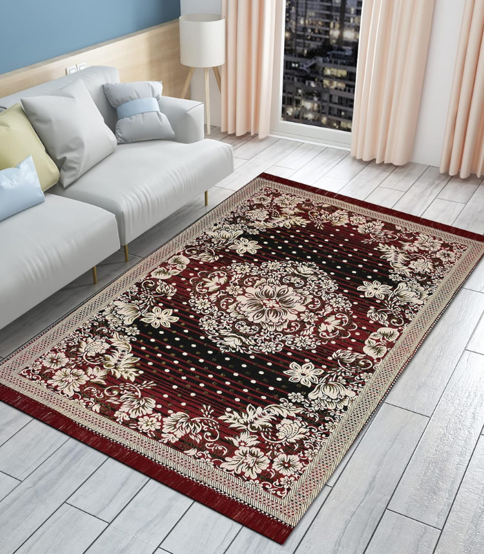 - Colour & Size: Maroon cotton carpet 5×7 feet.